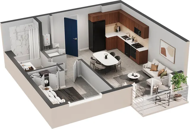 Inside your modern one or two bedroom apartments, you’ll find all the convenience you need for a comfortable lifestyle, energy star appliances, porcelain tile throughout the whole apartment and fans throughout the apartment. Floor plans are artist’s rendering. All dimensions are approximate. Actual product and specifications may vary in dimension or detail. Not all features are available in every apartment. Prices and availability are subject to change. Please see a representative for details. Deposit based on credit approval.